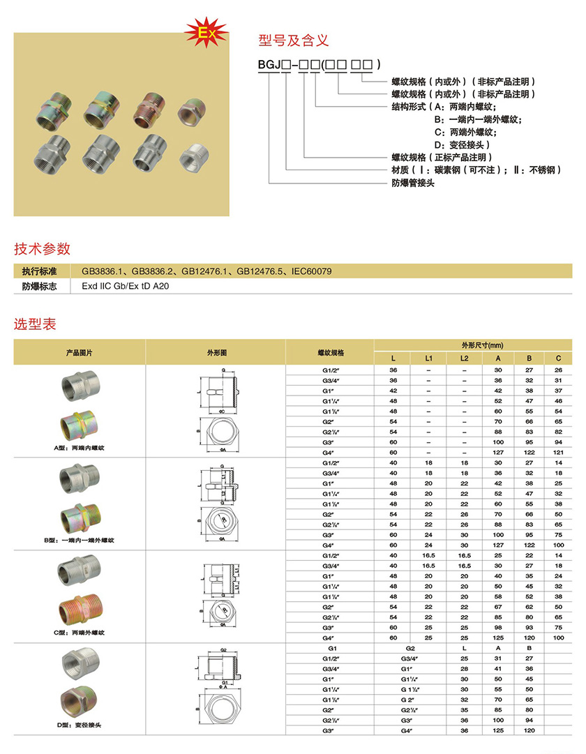 产品中心 防爆风机、管件类 BGJ系列防爆管接头(IIB、IIC)