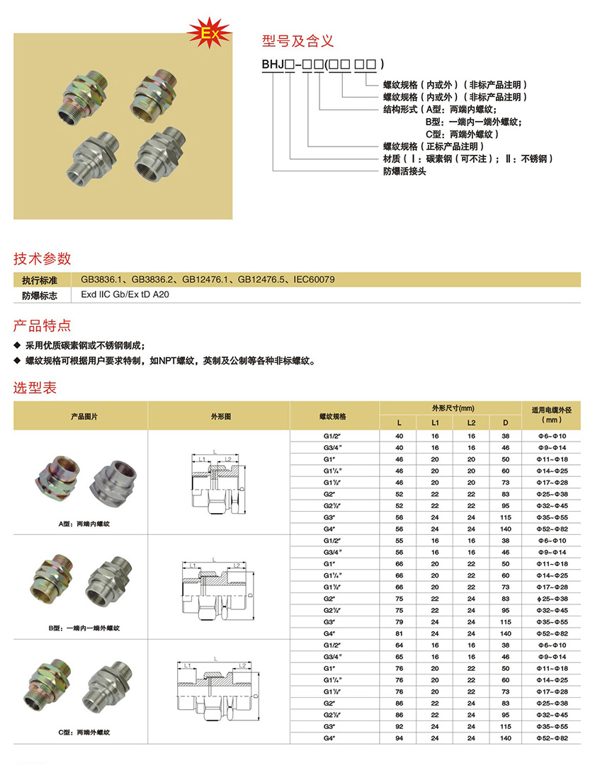 产品中心 防爆风机、管件类 BHJ系列防爆活接头(IIB、IIC)