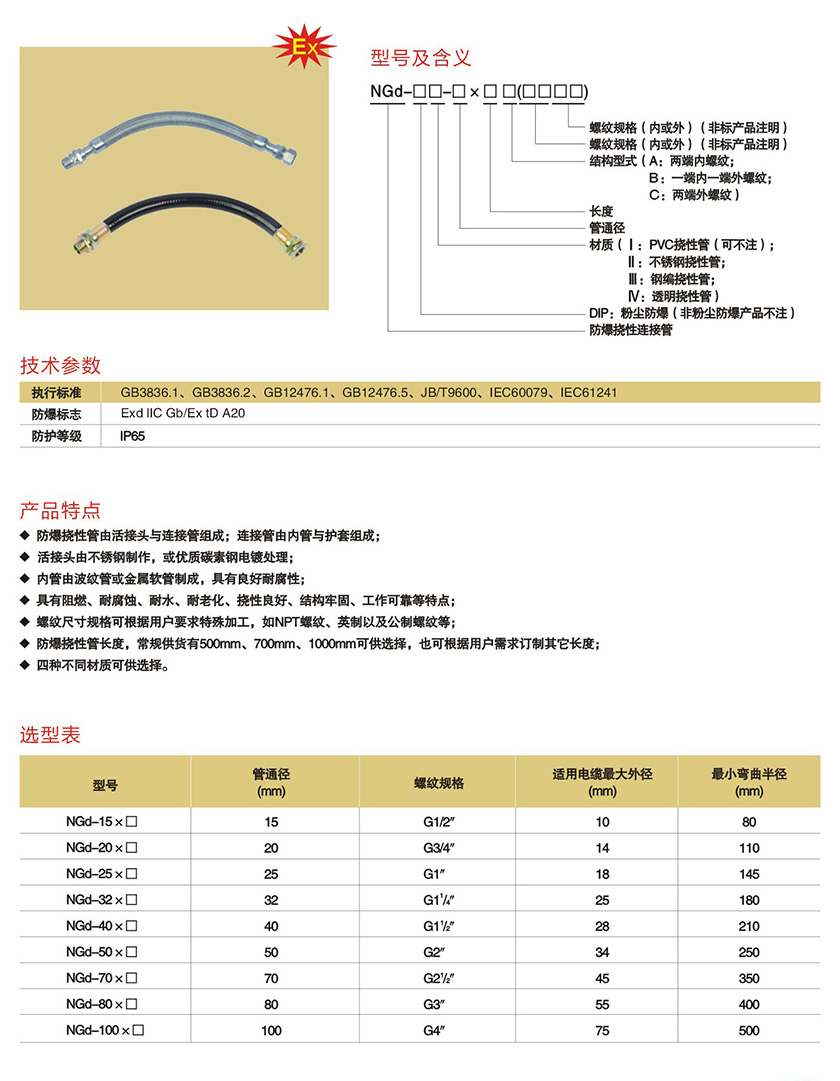 产品中心 防爆风机、管件类 NGd系列防爆挠性连接管(IIB、IIC)