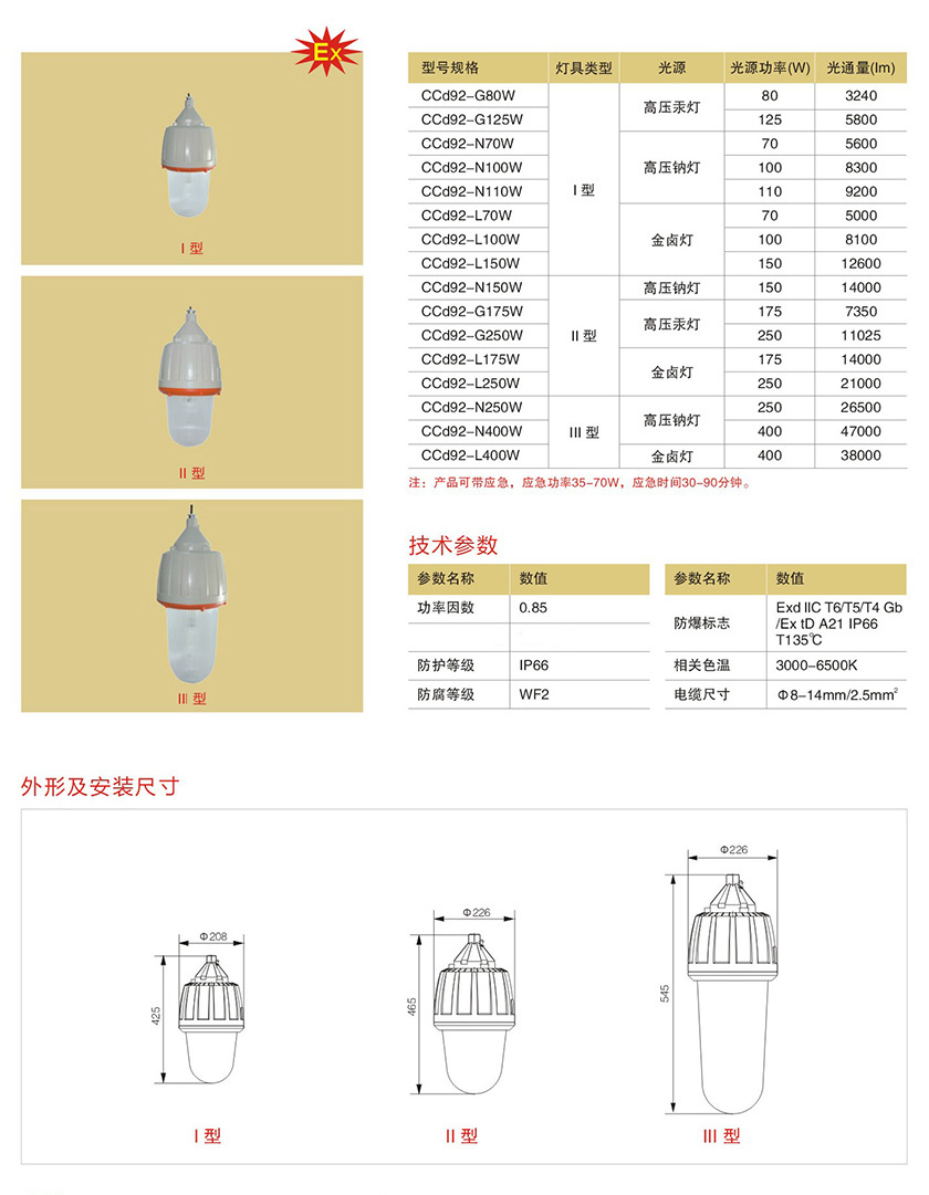 产品中心 防爆灯具类(金卤灯、钠灯) CCd92系列防爆照明灯(一体式)(IIC)