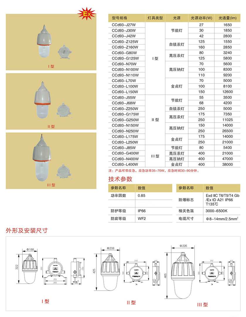 产品中心 防爆灯具类(金卤灯、钠灯) CCd93系列防爆照明灯(分体式)(IIC)