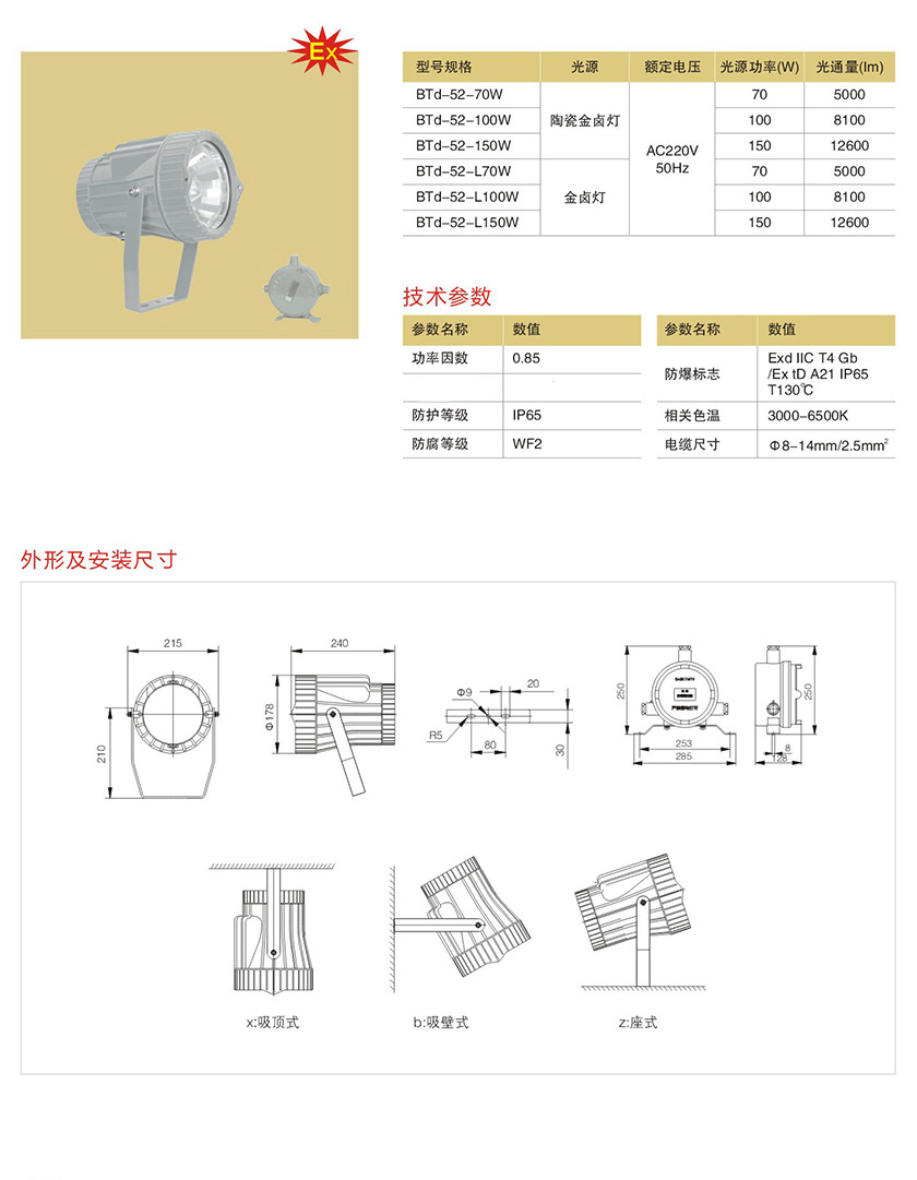 产品中心 防爆灯具类(金卤灯、钠灯) BTd-52防爆低碳投光灯(IIC)