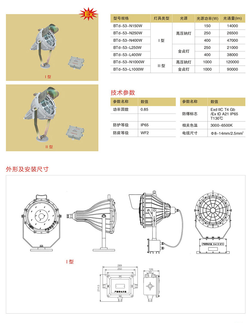 产品中心 防爆灯具类(金卤灯、钠灯) BTd-53防爆投光灯(IIC)
