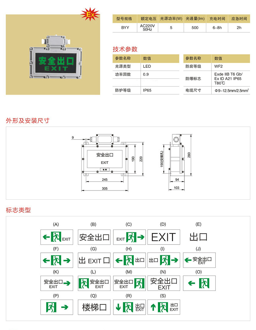 产品中心 防爆灯具类(金卤灯、钠灯) BYY防爆标志灯(IIB)