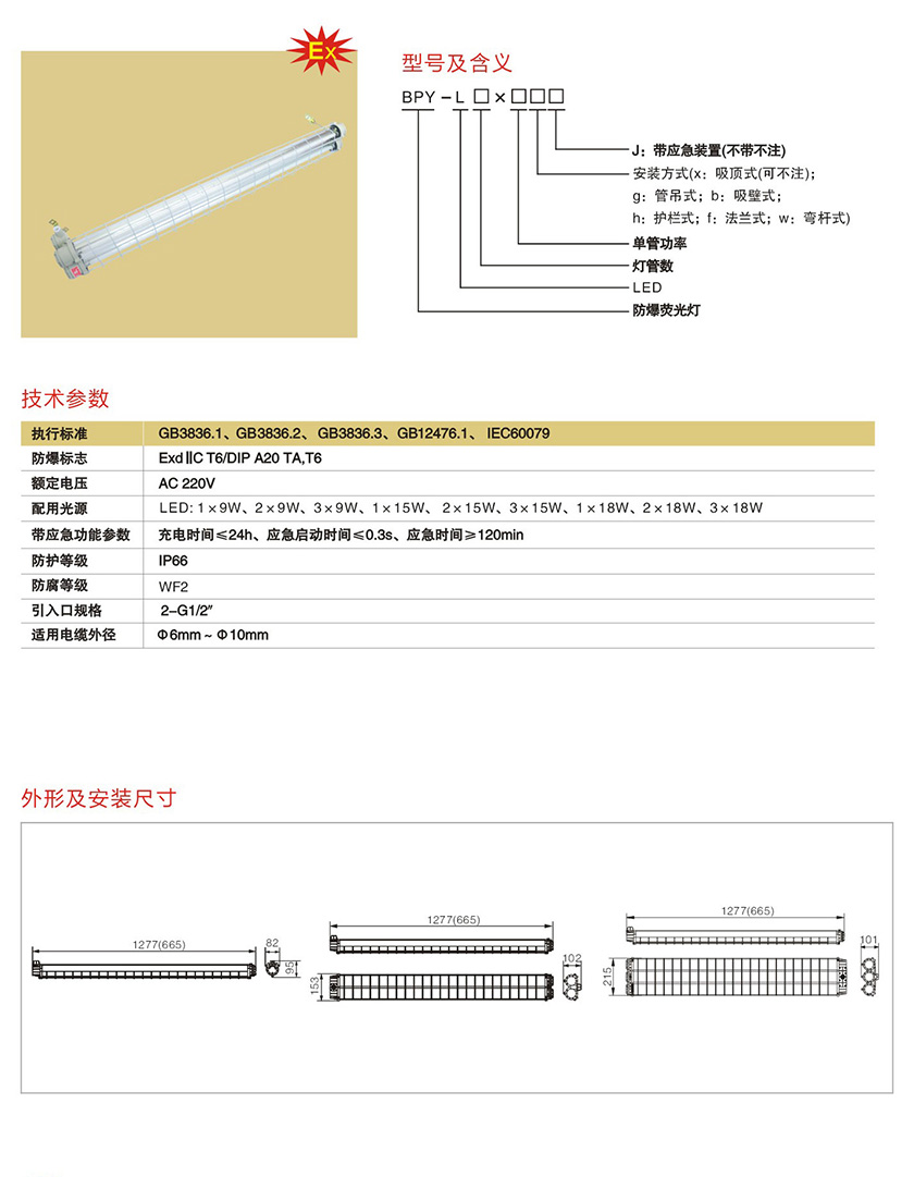 产品中心 防爆荧光灯类 BPY-L系列防爆LED荧光灯(IIC)