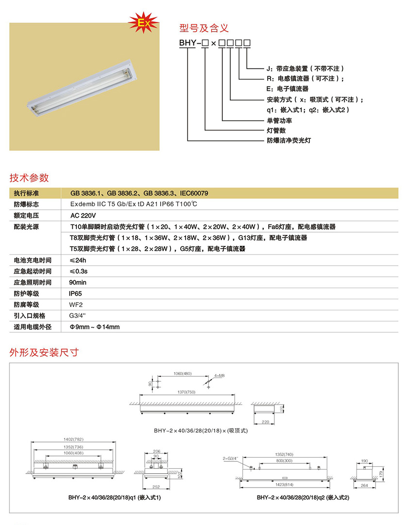 产品中心 防爆荧光灯类 BHY系列防爆洁净荧光灯(IIC)