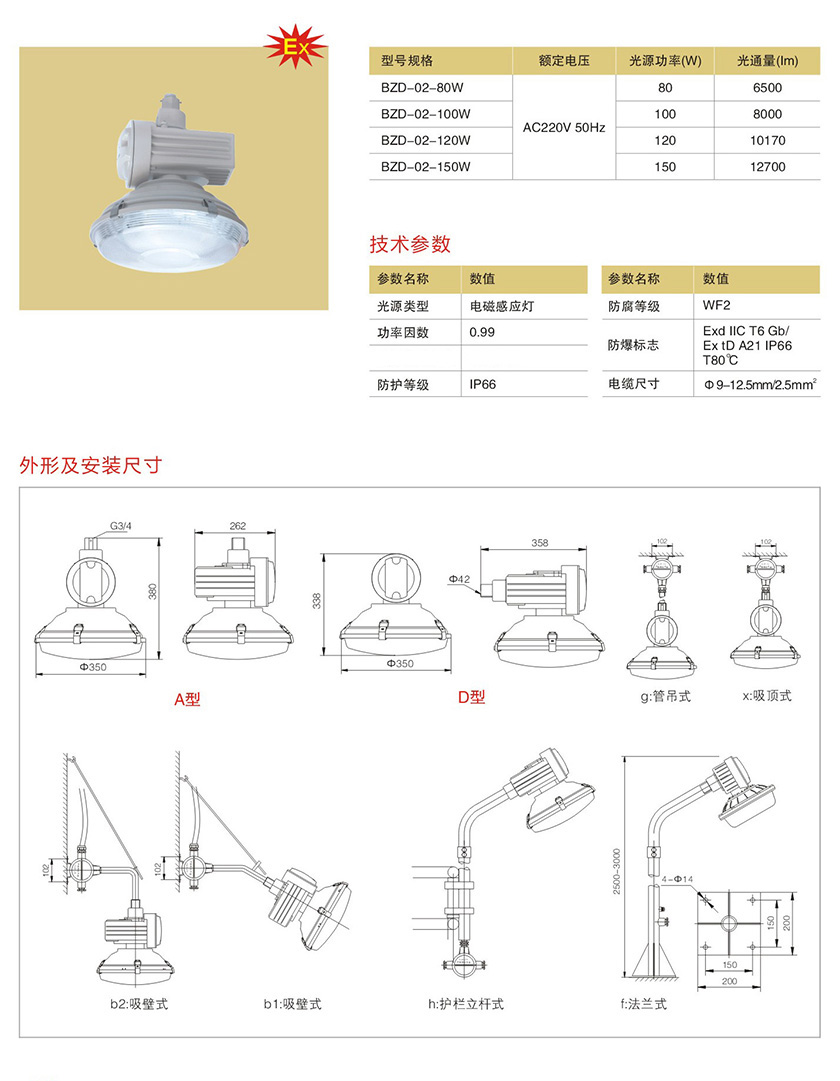 产品中心 防爆(三防)无极灯类 BZD-02防爆免维护低碳无极灯(IIC)
