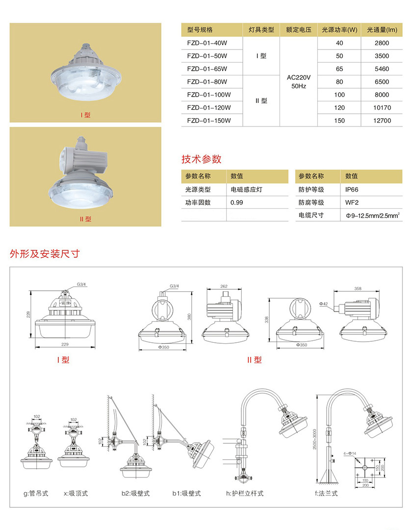 产品中心 防爆(三防)无极灯类 FZD-01系列免维护节能防水防尘防腐灯