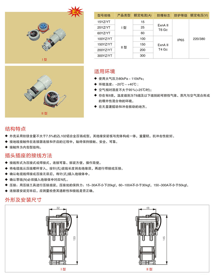 产品中心 防爆电器类 YZ/YT系列无火花防爆插销(IIB、IIC)