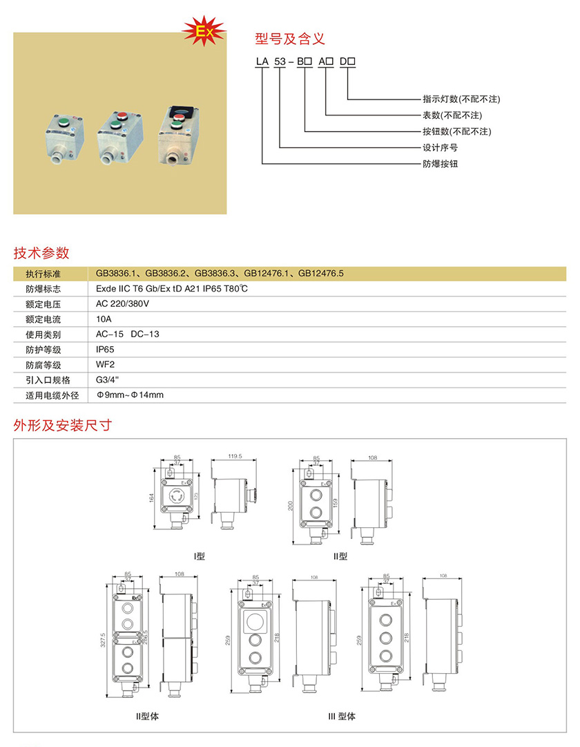 产品中心 防爆电器类 LA53系列防爆控制按钮(IIB、IIC)