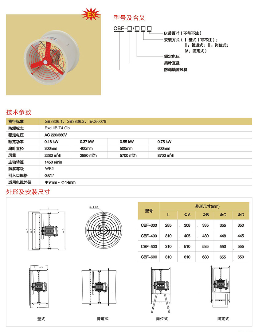 产品中心 防爆风机、管件类 CBF系列防爆轴流风机(IIB、IIC)